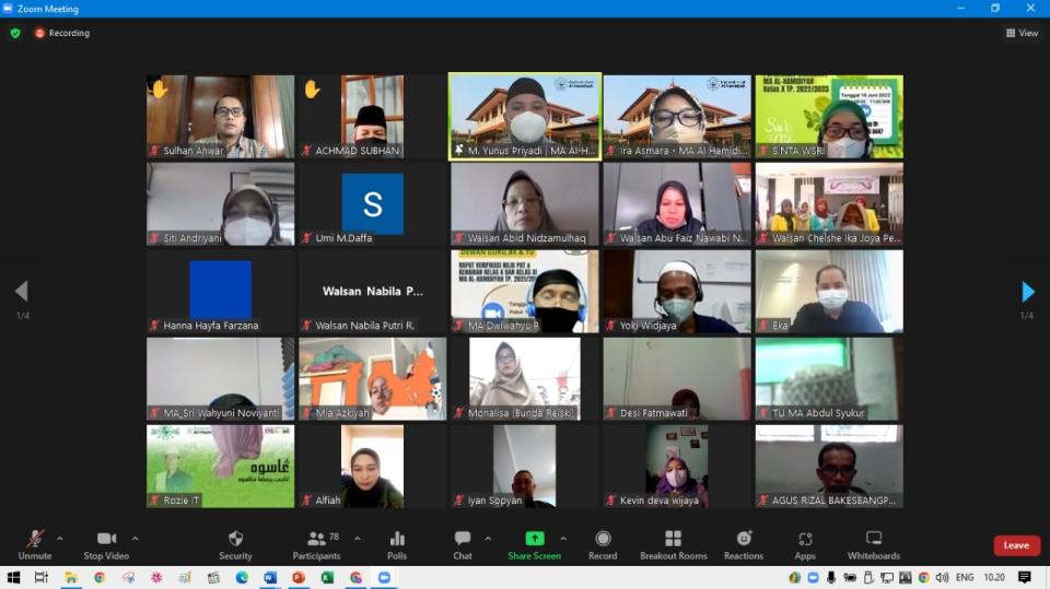 DEPOK - Madrasah Aliyah (MA) Al-Hamidiyah Depok mengadakan Pertemuan Wali Santri MA Al-Hamidiyah Kelas X Tahun Pelajaran 2022/2023 (Kamis, 16/06/22). Pertemuan ini dilaksanakan secara daring melalui aplikasi Zoom Meeting. Pertemuan ini bertujuan untuk memberikan informasi kepada calon wali santri kelas X MA Al-Hamidiyah mengenai hal-hal yang diperlukan untuk dibawa ke pesantren dan dokumen yang perlu dikumpulkan ke madrasah.