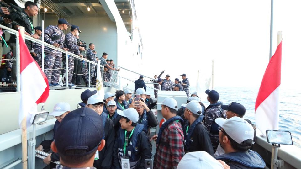 Mobilisasi peserta ke Pulau Pramuka menggunakan sekoci yang dibagi perkelompok secara bergantian. Tentu ini merupakan pengalaman yang mungkin hanya dirasakan sekali seumur hidup. Perasaan gembira dan antusias menjadi satu. Di dalam sekoci pastinya ada TNI AL yang bertugas sebagai pendamping selama mobilisasi.