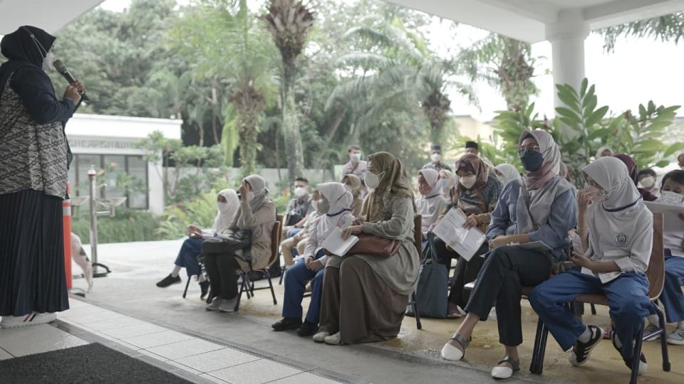 Direktur Utama YIH dr. H. Imam Susanto Sjaichu, Sp. Bp. Rek. Menyampaikan ”Kegiatan hari ini merupakan vaksiniasi ceria yaitu bagi murid umur 6 sampai 11 tahun, peserta terdiri dari SDIT sekitar 600 murid, kemudian TK, TPQ dan SMPI kelas awal, dan mereka semuanya ini sudah terdaftar dari hari sebelumnya. Dan kita juga berikan sosialisasi kepada orang tua murid akan datang jam berapa, kita bagi dalam beberapa gelombang, karena begitu banyak kerumunan juga tidak boleh, untuk menghindari kerumunan kita bagi giliran dan acara vaksinasi ini harus selesai sekitar jam 2”.