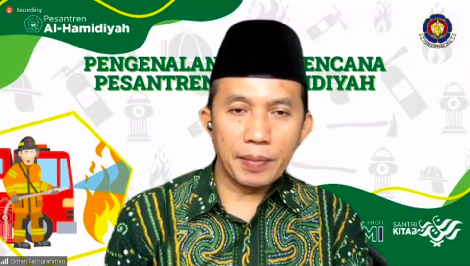 DEPOK - Pesantren Al-Hamidiyah bekerjasama dengan Dinas Pemadam Kebakaran (Damkar) dan Penyelamatan Kota Depok mengadakan Pengenalan Siaga Bencana, Selasa (29/03/22). Acara dibagi menjadi dua sesi, pertama online di pagi hari dan simulasi evakuasi pada siang hari.
