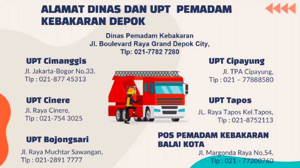 Sementara itu, Syarif Hidayat, S.Stp, Kepala Seksi Penyuluhan dan Peran Serta Masyarakat dari Damkar Depok mengingatkan bahwa bencana kebakaran terjadi karena dua hal, pertama faktor alam seperti gunung meletus dan petir, kedua kelalaian manusia seperti korsleting listrik, pemanas air, ledakan mesin pengisi baterai, lalai menyalakan obat nyamuk, lilin, dan sebagainya.