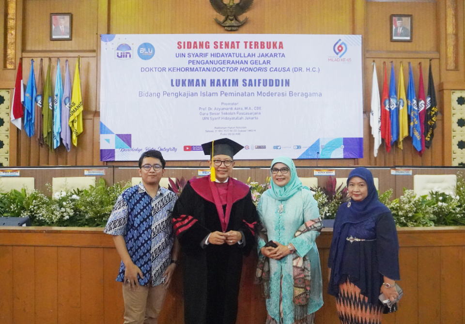 Rektor UIN, Amany Lubis mengatakan bahwa anugerah gelar doktor kehormatan diberikan UIN Jakarta sebagai bentuk penghargaan dan apresiasi kepada LHS yang telah mendedikasikan dirinya dalam merumuskan gagasan sekaligus praksis moderasi beragama.