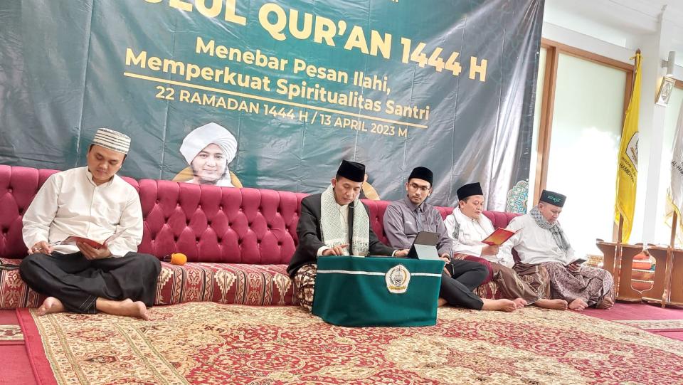 DEPOK- Pengajian Khataman Ayyuhal Walad karya al-Imam al-Ghazali sampai pada pembahasan yang terakhir di hari ke-14. Pertemuan ini diisi oleh Prof. Dr. K.H. Oman Fathurahman M.Hum. Seluruh pengajar juga hadir dalam khataman ini meliputi Kiai Mahfudz Anwar, Kiai Rasyid, dan Kiai Jauhari, Kepala Pesantren & Asrama, Suma Wijaya, M.IKom; serta Kepala Divisi Penjaminan Mutu yang juga cucu K.H. Achmad Sjaichu yakni Bapak R. Muh. Iman S, ST., MBA (Kamis 13/04/2023).
