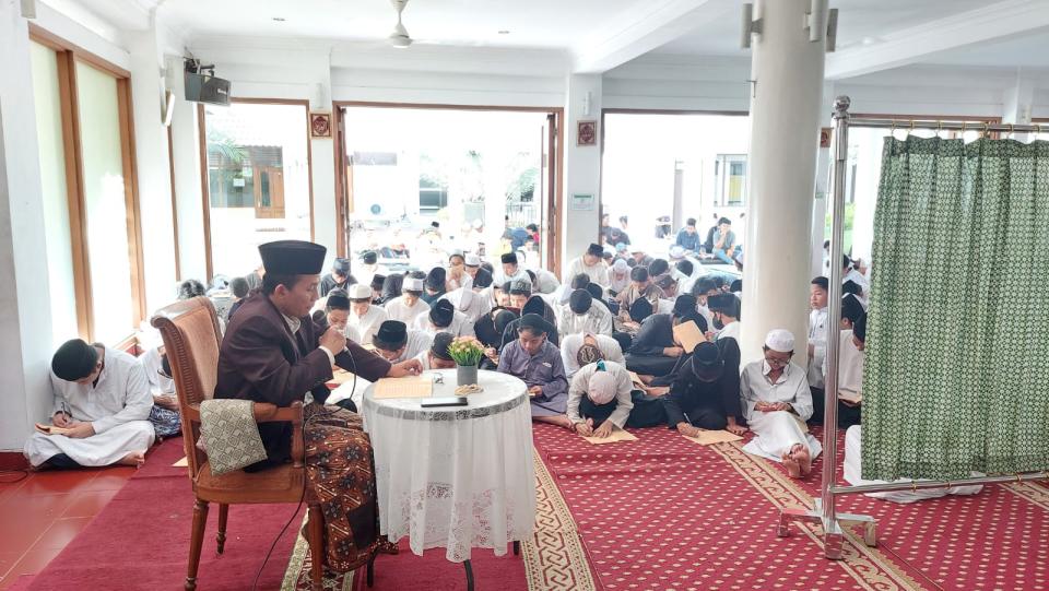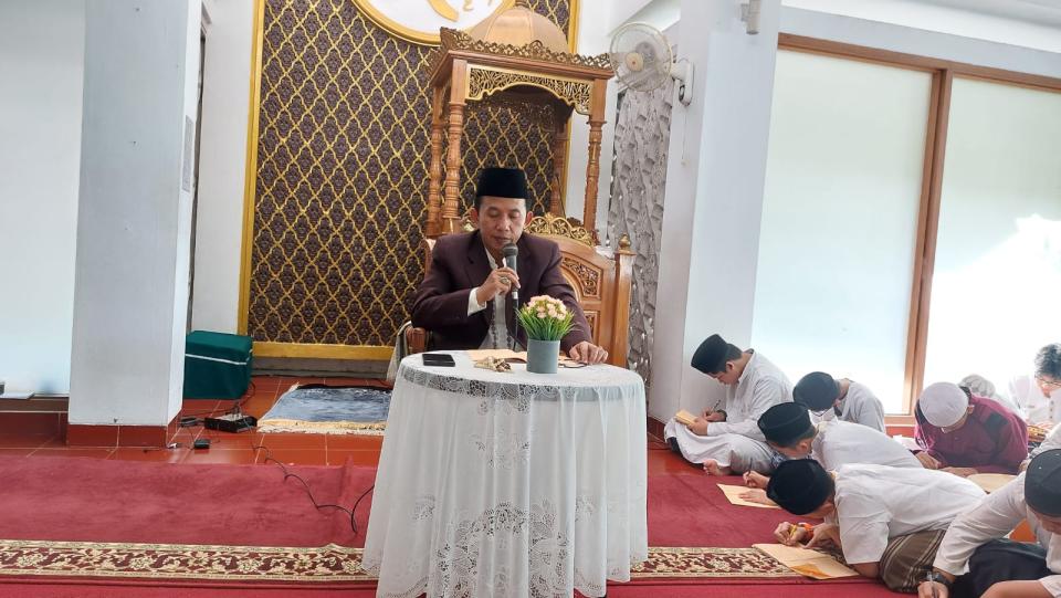 DEPOK – Kegiatan khataman Ayyuhal Walad karya Al-Imam Al-Ghazali yang diadakan setiap sore di Masjid Jami’ Al-Hamidiyah pada hari kedelapan diisi oleh Prof. Dr. K.H. Oman Fathurahman M.Hum. Semakin hari kian banyak materi yang telah disampaikan oleh beberapa kiai. Sampai hari ini, beliau menyampaikan materi yang berisikan tentang ajaran-ajaran guru terhadap santrinya (Rabu, 5/4/2023).