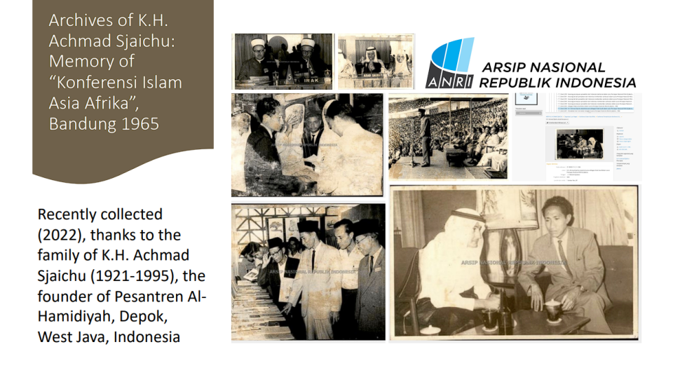 Seperti diketahui, Kiai Sjaichu memiliki arsip luar biasa di dalam konteks diplomasi Indonesia dan negara-negara di Timur Tengah. Di antara kontribusi beliau pernah menjadi Presiden Organisasi Konferensi Islam Asia Afrika. Dalam sambutan sebelum seminar, Duta Arsip, Dr. Rieke Diah Pitaloka, M.Hum menyebutkan beberapa arsip dan kutipan tokoh dunia dalam Konferensi Islam Asia Afrika tersebut.