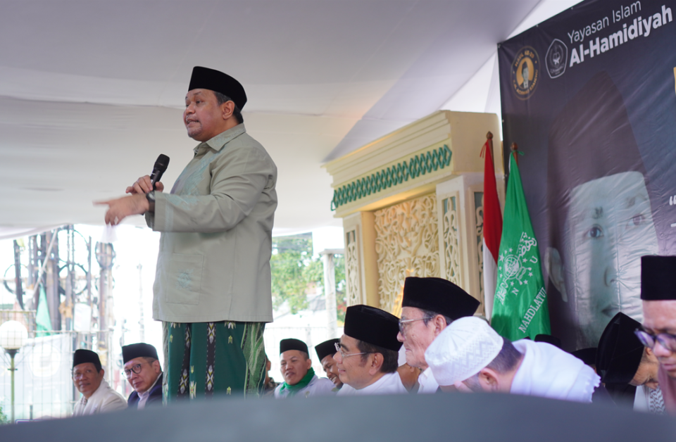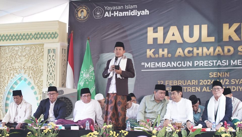 DEPOK – Panitia Haul Ke-29 K.H. Achmad Sjaichu di Pesantren Al-Hamidiyah mengusung tema “Membangun Prestasi, Meneladani Kiai”. Dr. K.H. Muhammad Faiz Syukron Ma’mun, Lc., M.A., Katib Syuriah Pengurus Besar Nahdlatul Ulama (PBNU) dan Pengasuh Pondok Pesantren Daarul Rahman Jakarta hadir memberikan ceramah agama (Senin, 13/02/2024).