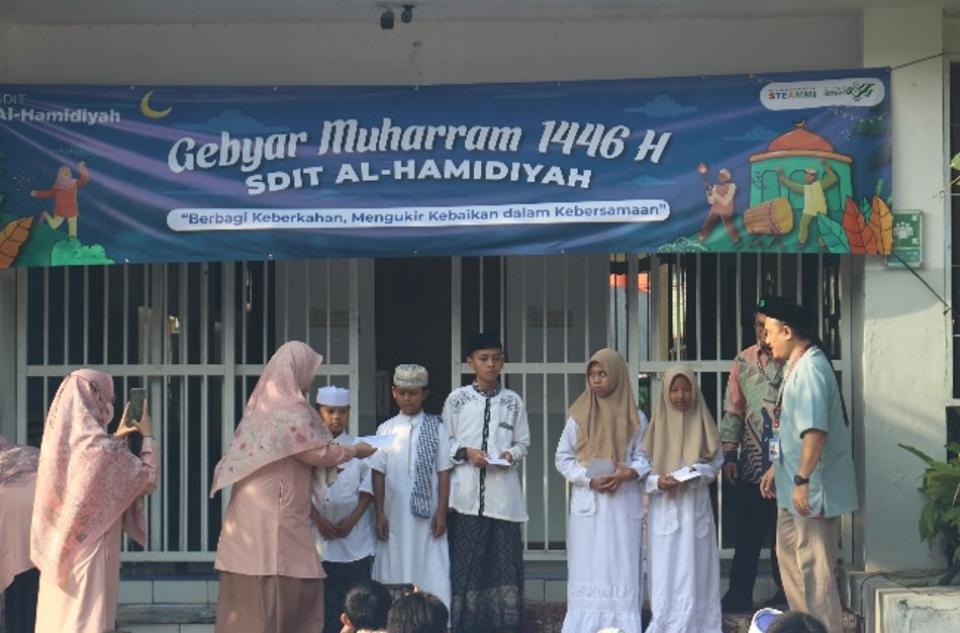 Muharram merupakan bulan yang mulia dan penuh makna, datang kembali untuk mengingatkan kita pentingnya memulai tahun baru dengan refleksi dan semangat baru. SDIT Al-Hamidiyah menggelar acara Gebyar Muharram pada Jumat, 30 Agustus 2024 yang bertempat di lapangan sekolah. Acara ini diikuti oleh seluruh murid, guru, manajemen sekolah, dan Mr. Swandaru, M.Pd. sebagai Kepala Departemen Kurikulum dan Kesiswaan Yayasan Islam Al-Hamidiyah.