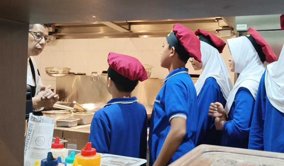 During the table manners lesson, the Chefs taught us about appetizers, main courses, and desserts, as well as the proper use of cutlery, how to hold a teacup correctly, and how to serve as a waiter or waitress. In that session, I showed my friend how to hold a teacup correctly, and I was right! Yay! I also had the opportunity to be a waitress. The staff explained that when serving food, you must approach the customer from the right, and when pouring water, you should use both hands. They also taught us about the different types of spoons and forks, such as soup spoons (for soup and dessert) and dessert forks (specifically for desserts), and, of course, knives for cutting food.