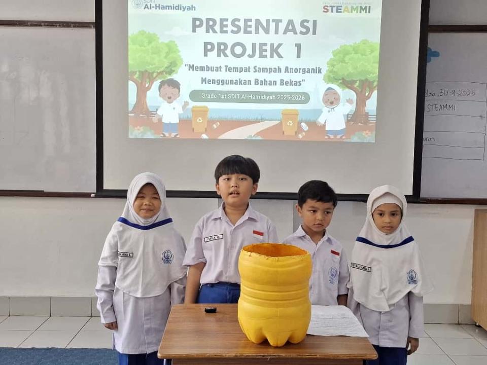 Lingkungan sekolah SDIT Al-Hamidiyah selama sepekan penuh (22-26 September 2025) dipenuhi semangat kreasi dan inovasi melalui gelaran Pekan STEAMMI (STEAMMI Week) proyek 1. Mengangkat tema besar "Pahlawan Lingkungan - Eco Inovator," seluruh siswa dari kelas 1 hingga kelas 6, ditantang untuk merancang solusi nyata dalam upaya mengurangi sampah plastik dan memanfaatkannya kembali menjadi barang berguna. Pekan STEAMMI ini bukan sekadar pameran, melainkan aplikasi langsung dari prinsip Sains, Teknologi, Rekayasa, Seni, dan Matematika, yang berfokus pada keberlanjutan.