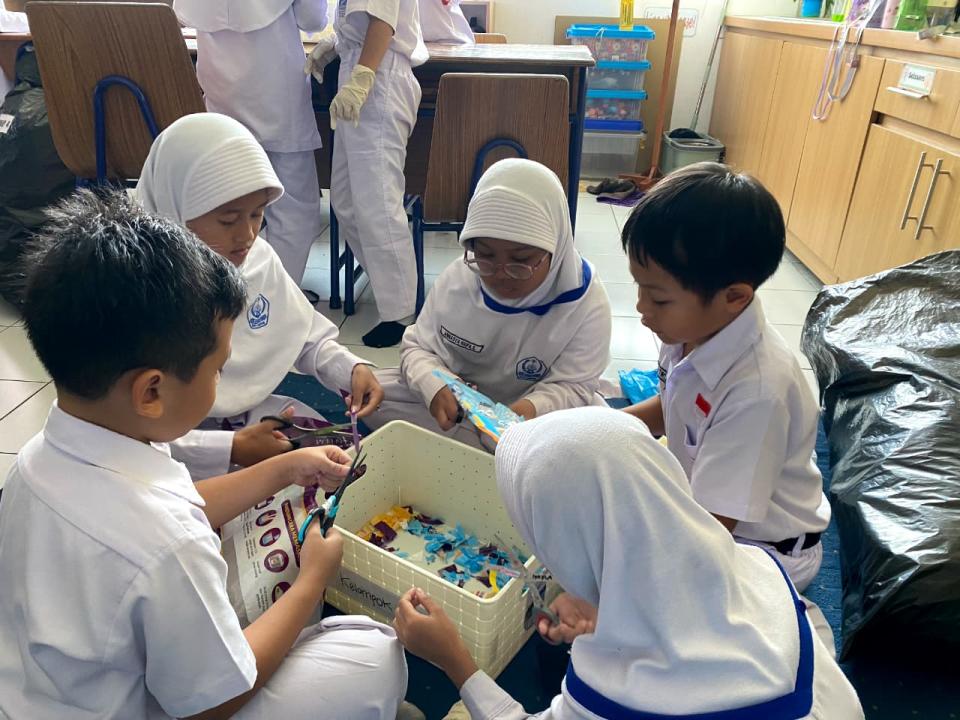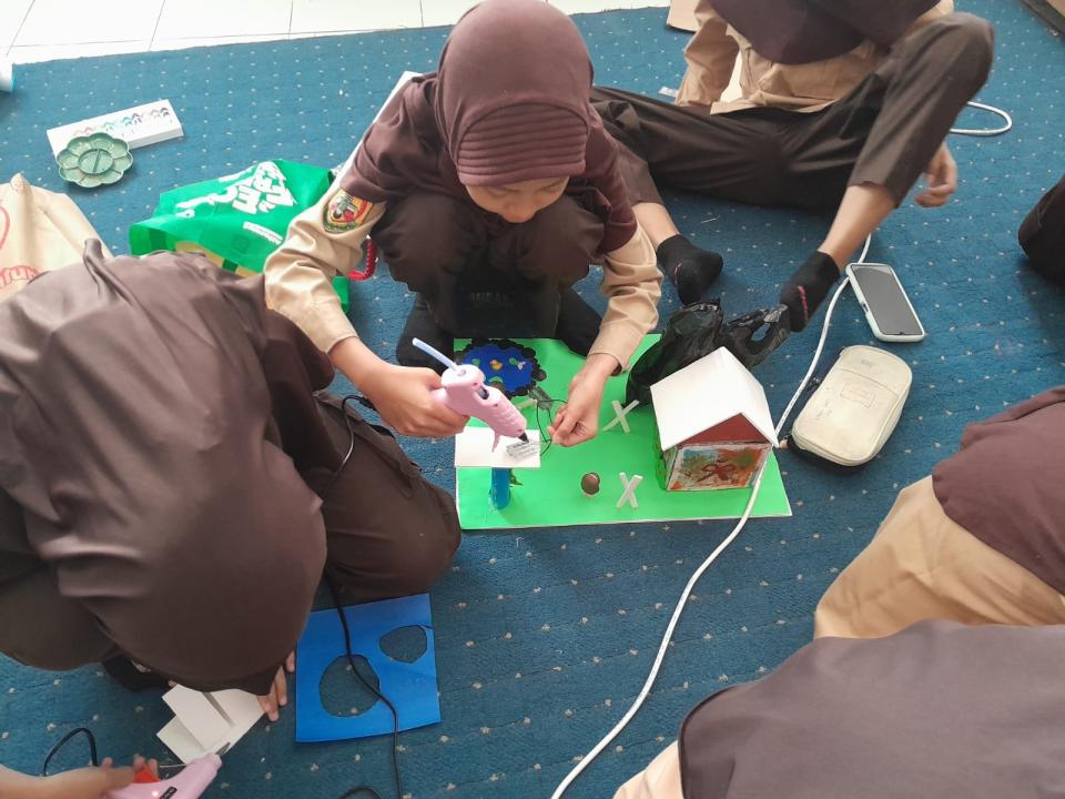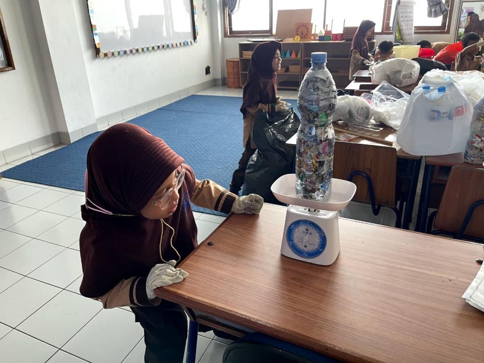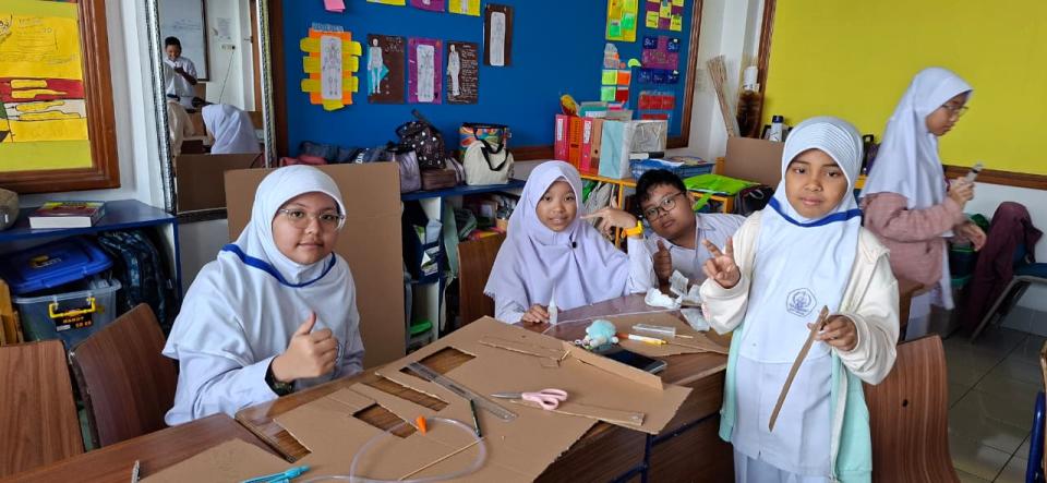 Level 2, membuat “Eco-Furniture for Our Future” Siswa merancang furnitur mini (meja, kursi, rak) dengan menggunakan botol dan sampah plastik bekas sebagai isian. Proyek ini mengajarkan prinsip rekayasa struktural dan daur ulang.