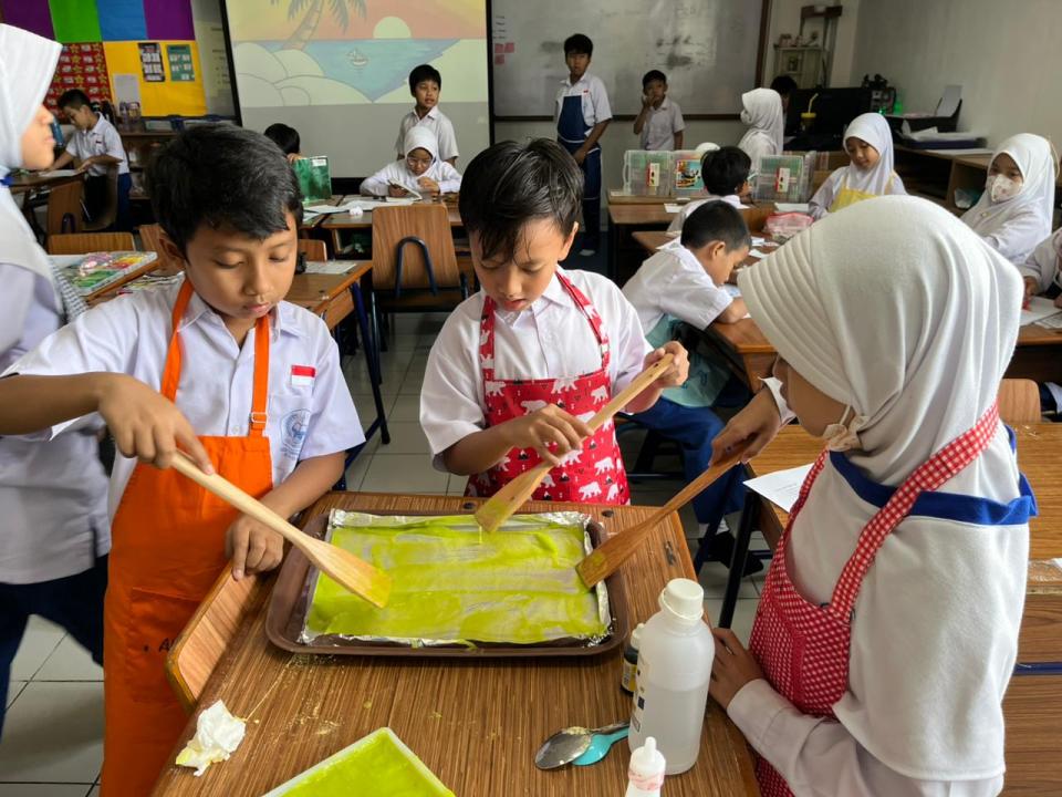 Level 3, membuat “Degradable Plastic”. Menjadi ilmuwan cilik! Siswa meracik plastik aman untuk wadah makanan dari bahan-bahan alami seperti tepung sagu, singkong, jagung, dan gelatin. Proyek ini mendalami ilmu Kimia (Sains) dan sifat Polimerisasi.