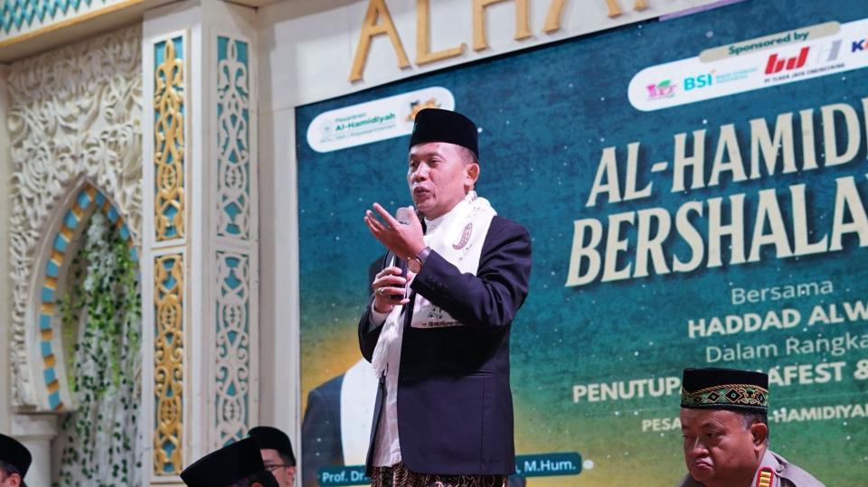 DEPOK – Pergelaran akbar Al-Hamidiyah Festival (Ahafest) 2025 resmi ditutup dengan malam spesial "Al-Hamidiyah Bersholawat" yang menghadirkan artis religi terkemuka, Abi Haddad Alwi, pada Jumat (25/10). Acara penutupan ini digelar di Pesantren Al-Hamidiyah, Depok, dan dihadiri oleh ratusan santri serta masyarakat.