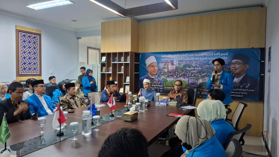 CIPUTAT — Kontribusi keilmuan Pesantren Al-Hamidiyah kembali mendapat pengakuan di ruang akademik perguruan tinggi. Pada Rabu, 15 April 2026, Mab’uts Al-Azhar Pesantren Al-Hamidiyah, Syekh Dr. Ali Abdul Aziz Ahmad Kamaluddin, tampil sebagai narasumber dalam seminar ilmiah internasional yang diselenggarakan oleh Program Studi Bahasa dan Sastra Arab, Fakultas Adab dan Humaniora, UIN Syarif Hidayatullah Jakarta.