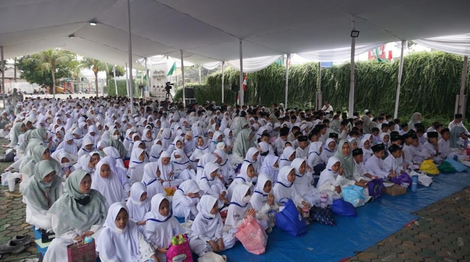 Depok- Dalam rangka memperingati Maulid Nabi Muhammad saw., SDIT Al-Hamidiyah menggelar kegiatan yang inspiratif dan bermakna pada Kamis, 23 Oktober 2025 di pelataran parkir Yayasan Islam Al-Hamidiyah. Kegiatan ini diikuti oleh seluruh murid, guru, dan tenaga kependidikan dengan suasana yang khidmat sekaligus meriah. Acara diawali dengan pembacaan tahlil dan berzanji (maulid) oleh Ustadz Madinah dan tim Hadroh Guramiyah. Selanjutnya, Ustazah Ulya membacakan ayat suci Al-Qur’an, dilanjutkan dengan menyanyikan lagu Indonesia Raya, Mars Yayasan Islam Al-Hamidiyah dan Mars SDIT Al-Hamidiyah, yang dipandu oleh konduktor, Rayyan, murid dari kelas 5 Ali bin Abi Thalib.