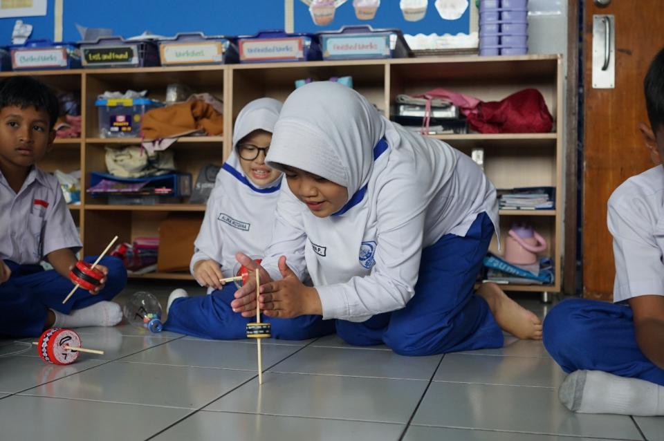 Di tengah perkembangan teknologi digital, siswa Level 2 menghidupkan kembali nostalgia permainan tradisional melalui inovasi Power Classic Spinner dengan memanfaatkan botol plastik bekas beserta tutupnya. Proyek ini sekaligus menjadi sarana sosialisasi antarteman yang menyenangkan. Setelah menyelesaikan proyek, anak-anak melakukan battle antarkelompok, untuk melihat gasing yang lebih lama berputar dan stabil.